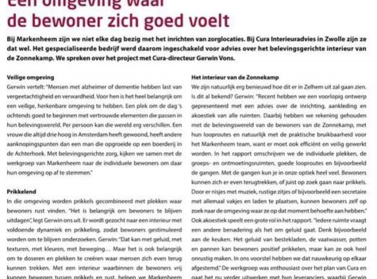 Speciaal voor deze teams is de kennissessie “Hoe wilt u wonen…vandaag?” ontwikkeld. De bedoeling is om teams zich bewust te laten worden van hun handelen en het inzetten van de fysieke omgeving ten gunste van de bewoners. Tijdens een korte intensieve kennissessie van 3 uur neem ik teams mee in het opfrissen of bijbrengen van de kennis over de meest voorkomende ziektebeelden in de ouderenzorg. Hoe kan de woonomgeving worden ingezet als welzijnsinstrument? En hoe gaan wij daarin werken? Deze kennissessie levert een waardevolle bijdrage aan het welzijn van bewoners en het werkplezier van zorgpersoneel.