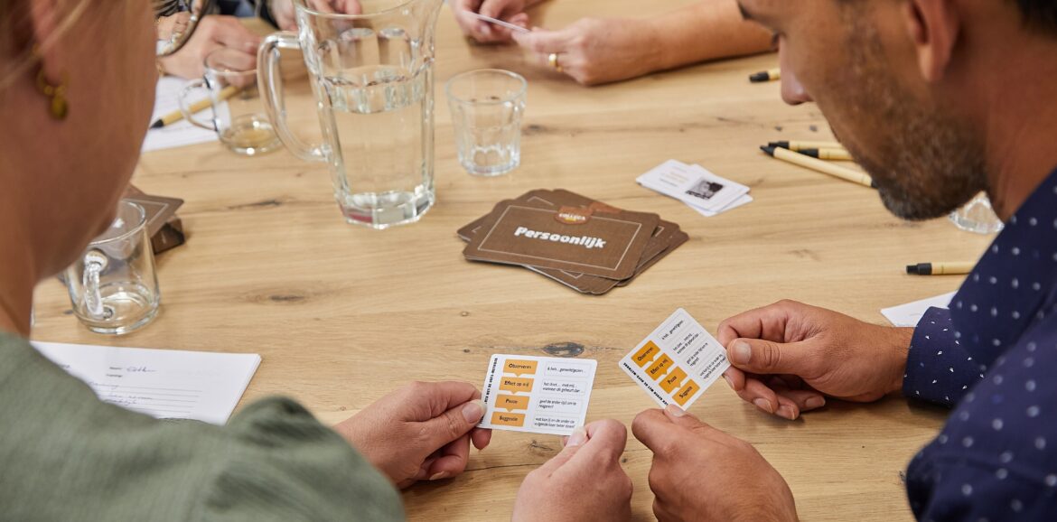 Zo ook feedback geven. Als dingen goed gaan en als dingen moeilijk zijn. Een eenvoudige manier om elkaar aan te spreken. Met een kaartje in je hand. Terugkijken. Doen. Herhalen.